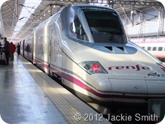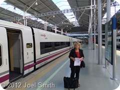The cost of our two AVE (the high speed train) tickets, which we purchased before leaving home and printed out on our computer (Malaga to Barcelona), was 316-euro, or $433US.