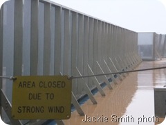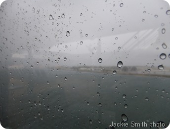 We thought our forecaster was off base when Sunday morning we arrived at the cruise terminal under blue skies. There was a strong wind and it chilled to the bone but it wasn’t raining. That was a good thing. My ‘carefree’ wind-blown hairdo illustrates the wind power (and yes I was holding the rail to fend off some of the stronger gusts).
