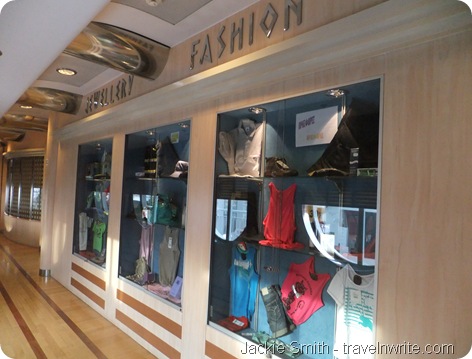 Need a dress? Or a shirt? Flip flops or a hat? A leather bag? Hat? Just head to the shop on board. Much like those on a cruise ship, just a bit smaller.