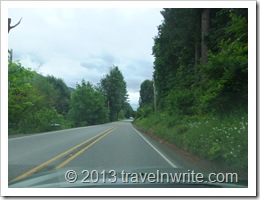 Past beautiful meadows, pastureland, and forested hillsides. Well, they would have been really beautiful had the fog and clouds not dulled their emerald sparkle. I traveled through little hamlets named Acme, Clipper and Van Zandt – each calling out for a longer look on a future trip.